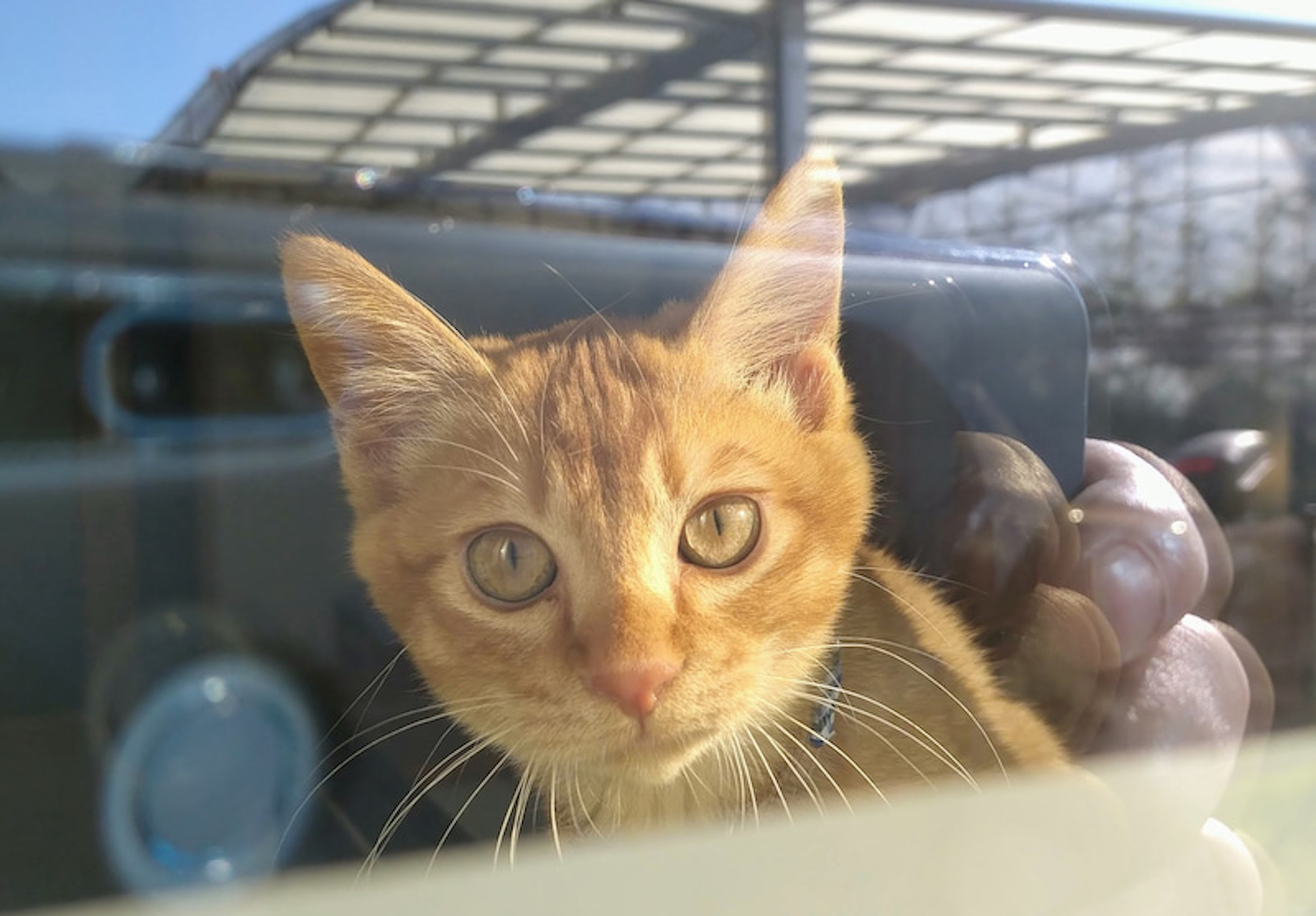 にゃんこが部屋の中から、こちらの方をのぞいています。