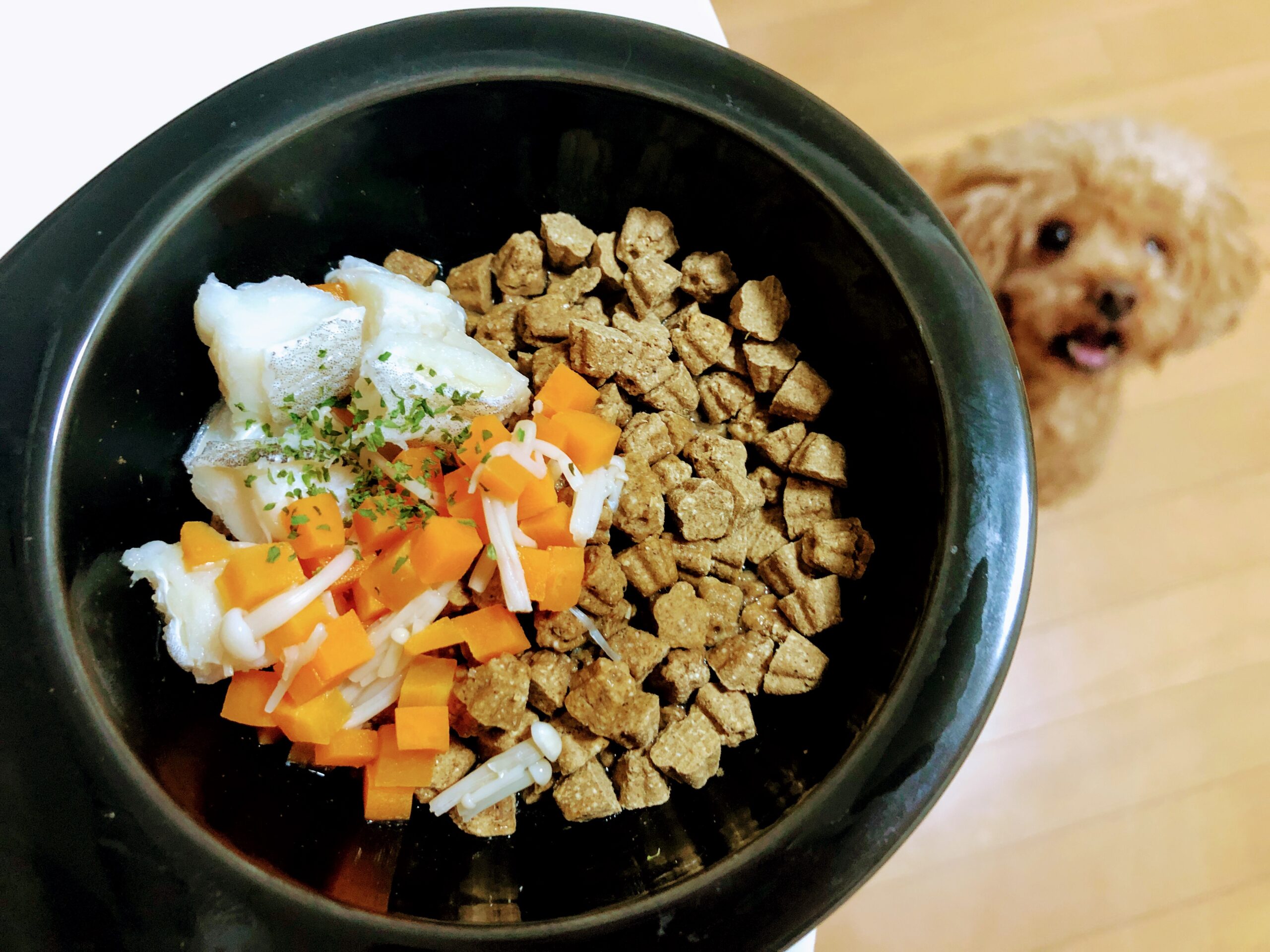 愛犬ご飯日記【鱈と野菜のスープ丼】