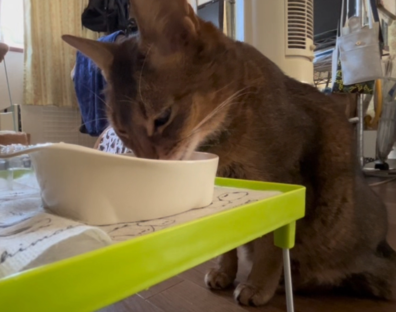 姿が見えなかった日、しばらく静かに様子を見ながらドライフードのケースを鳴らして名前を呼んでみると、