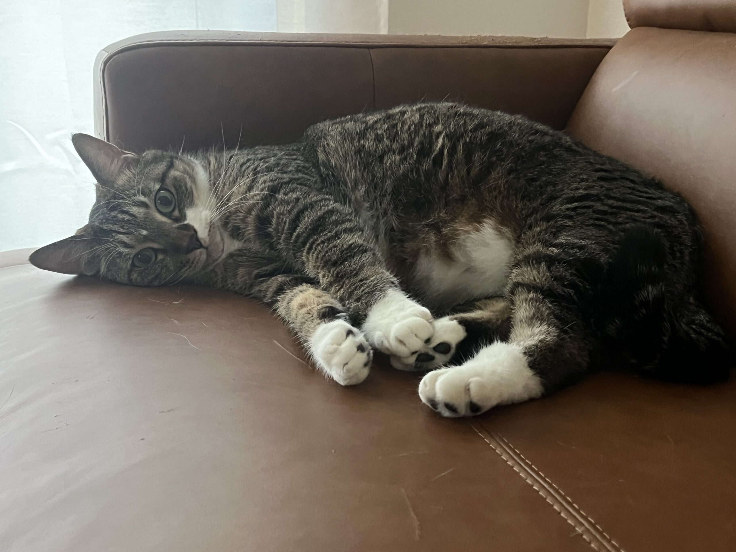それが今では、すっかりくつろいだ顔でゴロゴロしてお腹を見せてくれるようになりました🐈