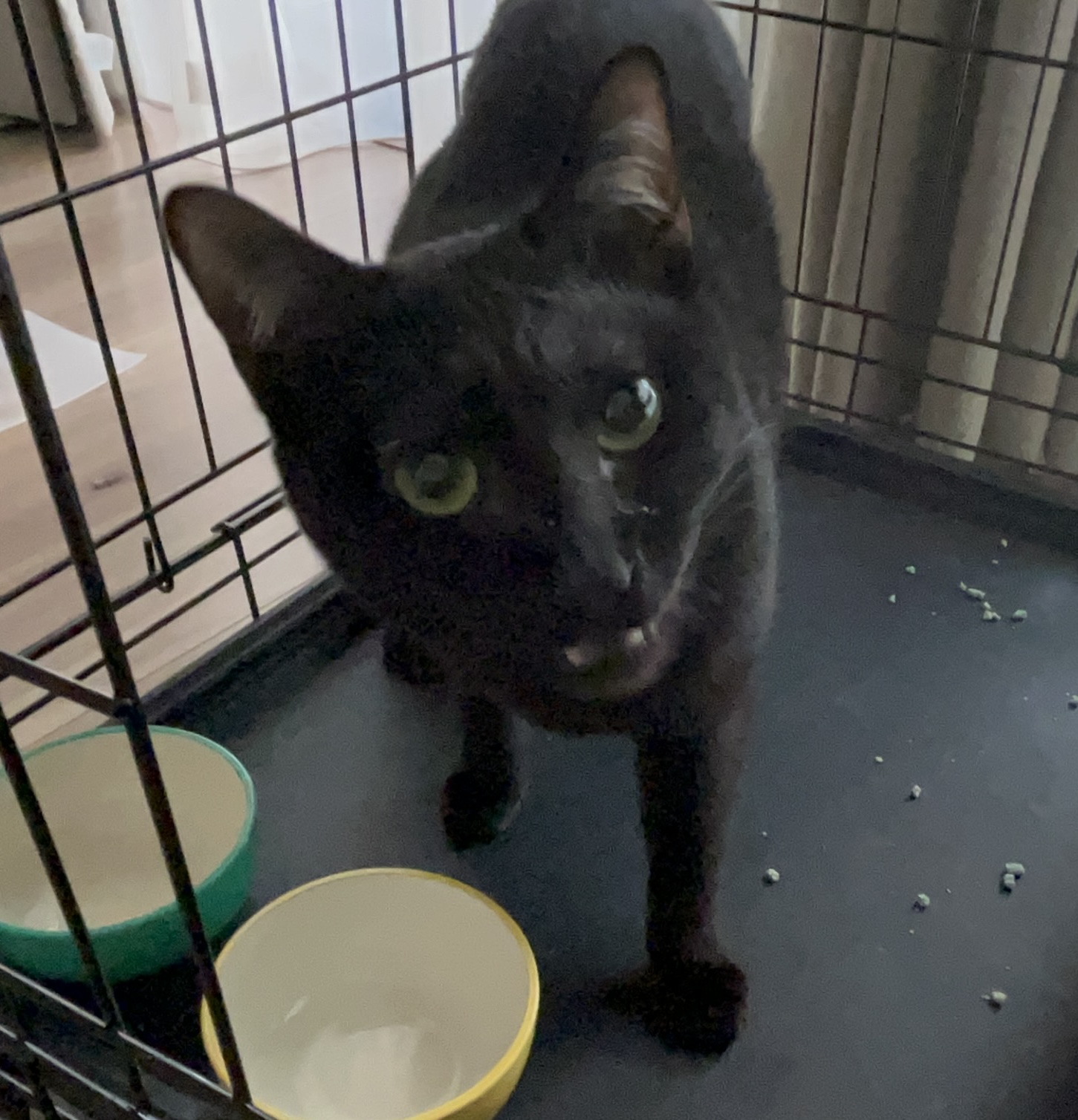 初日、あずきくんは冷蔵庫上に逃げ、すずかちゃんは警戒しながら少し近づいてきてくれていました!