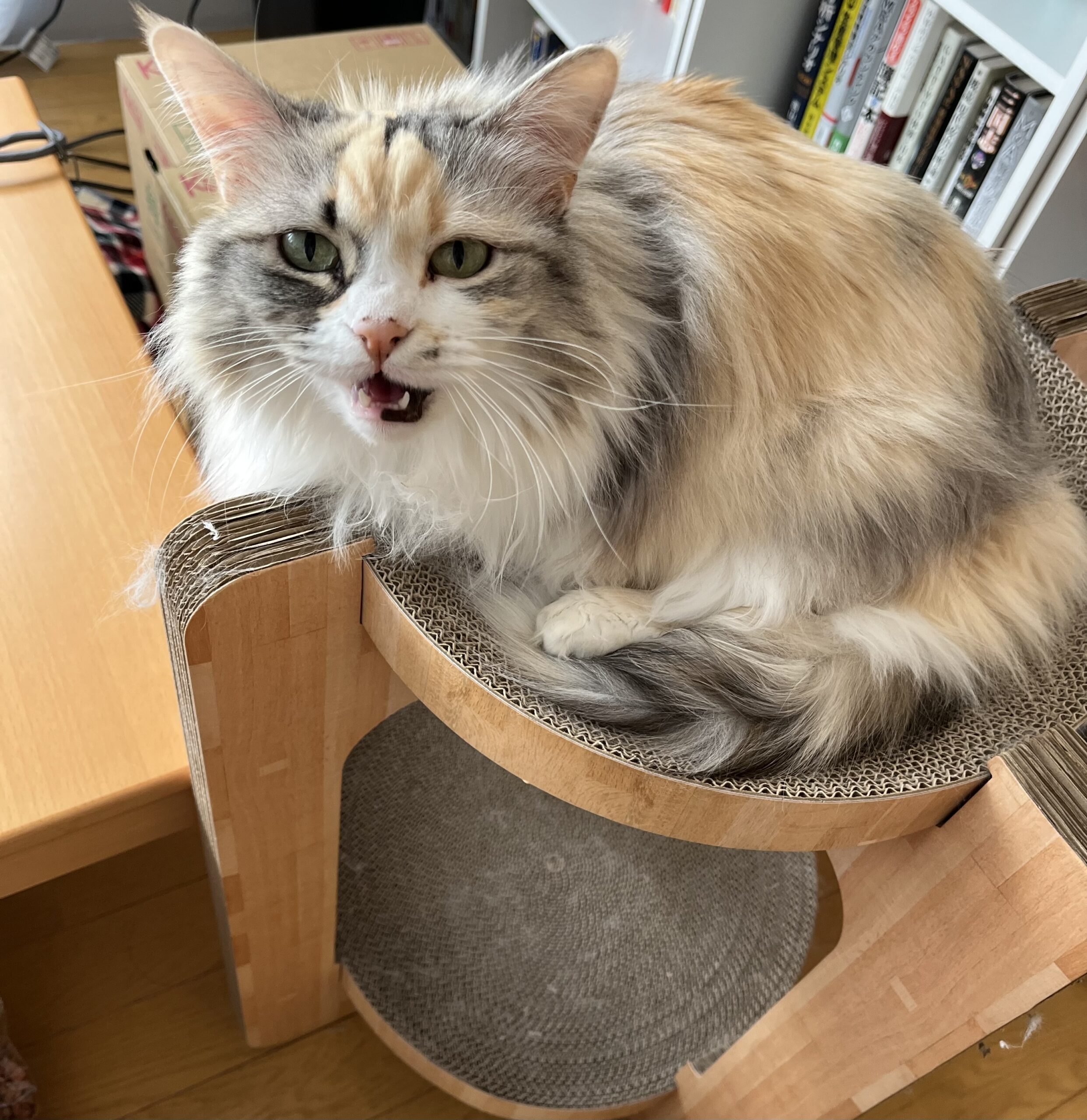 とても大人しく、トイレ掃除などのお世話をしている間はずっと写真のベッドに座って待っています😌